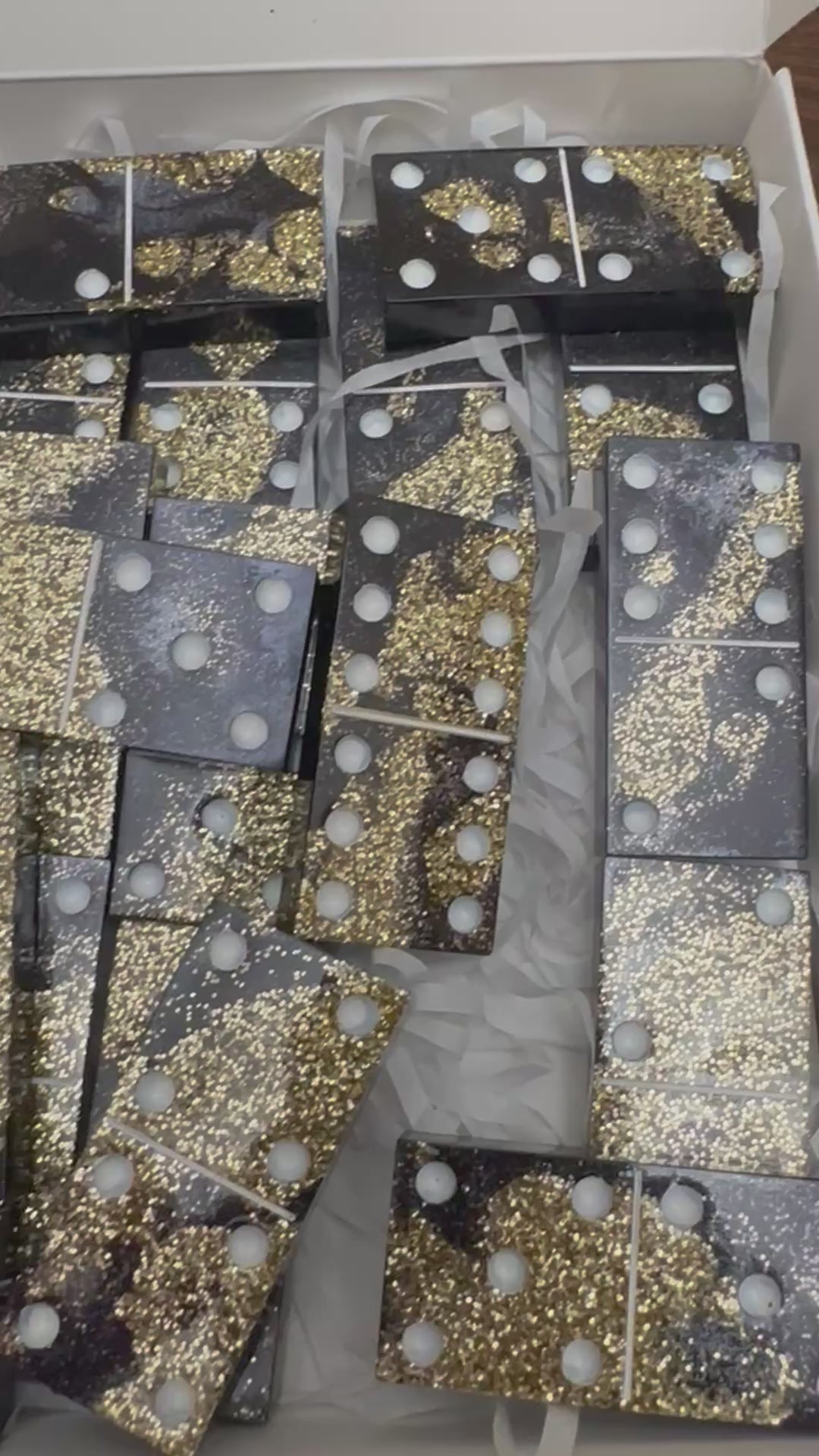 Each set has 28 pieces. Each piece is uniquely handmade with resin. Play dominos by yourself or with your friends and family for a great time.